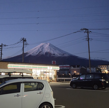 思っていたより早くつきすぎて三時間ほど寒い時間をすごし、立ちよったコンビニから出て振り返ったら富士山!