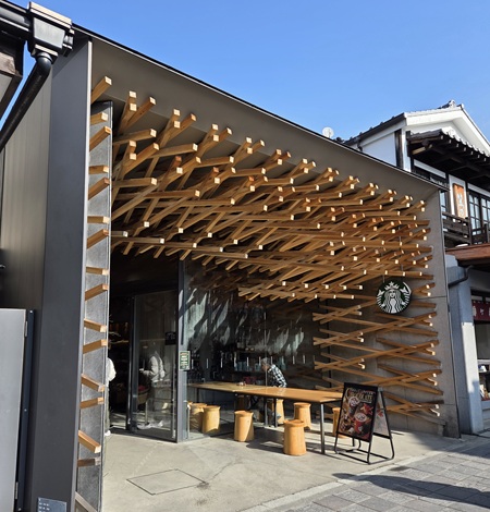 大宰府に着てまでスタバ??いやいやこちらの店舗は有名な建築家の隈研吾氏が設計されたことで有名で、素人目にも凄いつくりでした!